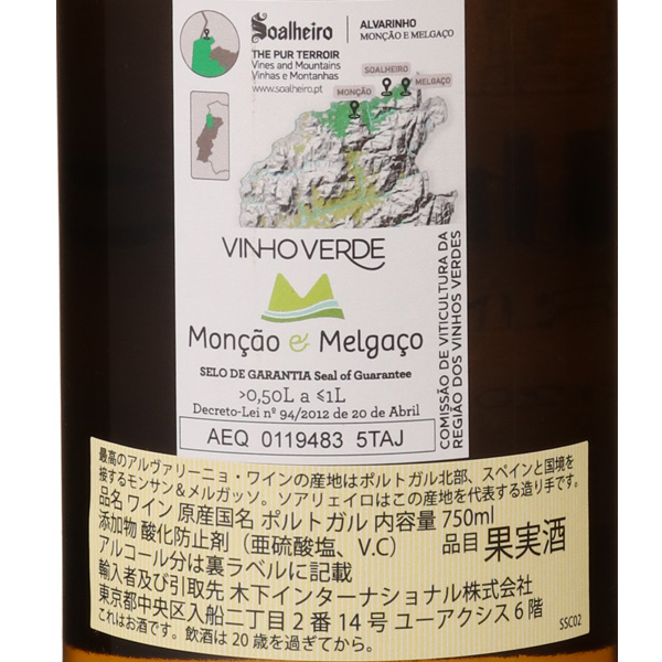 ポルトガル最北端のメルガソは、山々に囲まれ、降雨量・気温・日照量など、アルヴァリーニョ種が生育するのにベストと言える条件を備えます。この特殊なマイクロクライメイトを利用し、1974年にジョアン・アントニオ・セルデイラ氏が最初にアルヴァリーニョ種を植え、1982年に初めて「ソアリェイロ」ブランドをリリースしました。「ソアリェイロ」という名前は、畑の中でも最も日当たりの良い場所の名前から由来しています。