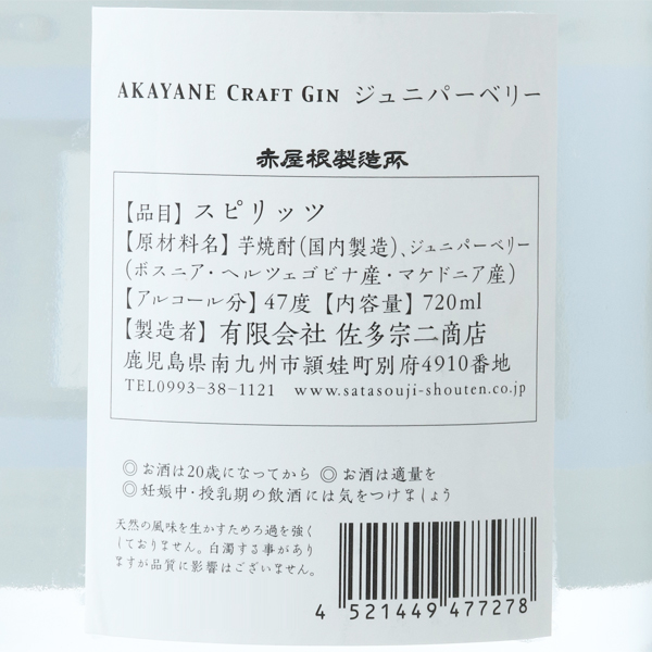AKAYANE CRAFT SPIRITS GIN ジュニパーベリー 47度 / 佐多宗二商店