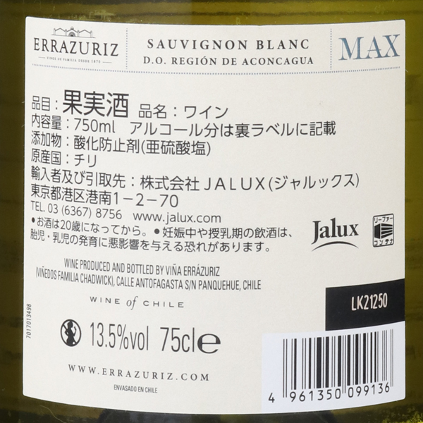マックス・レゼルヴァ・ソーヴィニヨンブラン 2021 / エラスリス