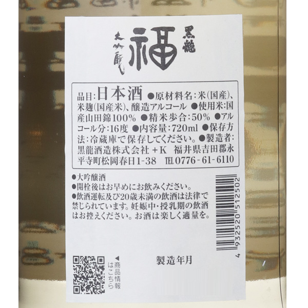 黒龍 大吟醸 福ボトル