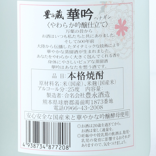 豊永蔵 華吟 やわらか吟醸仕立て 米焼酎 25度 / 豊永酒造