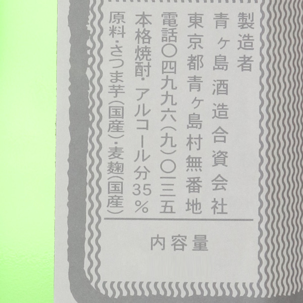 青酎 芋焼酎 35度 / 青ヶ島酒造