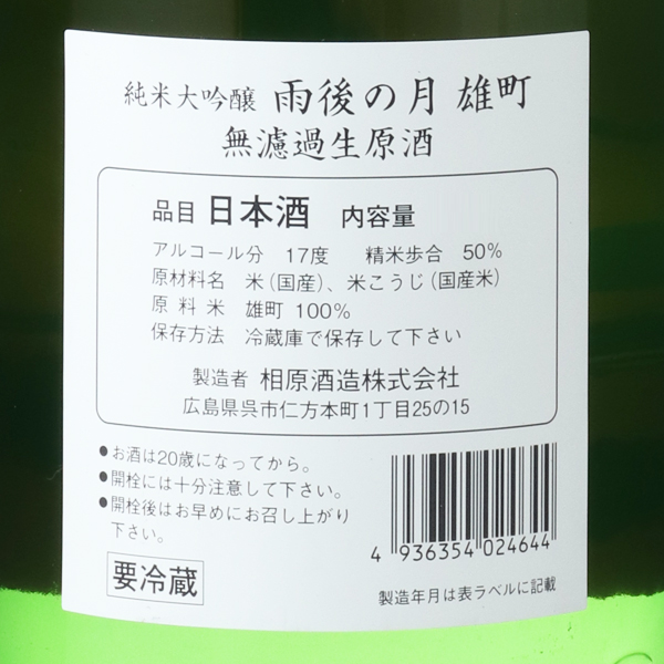 雨後の月 純米大吟醸 雄町 無濾過生原酒