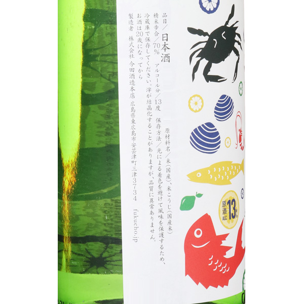 牡蠣のため!そしてレモンで食べる魚介類のための食中酒!富久長の新タイプの純米酒です。このお酒は、もともと地元安芸津町の特産品である牡蠣のために造りました。地元でいちばん食べられるのは焼き牡蠣。味が凝縮した焼き牡蠣にあえば、他の料理にもあわせやすいかもしれないと考え、まず酒質の目標とする成分を分析することから始めました。そして実現可能な方法を探ってたどりついたのが白麹の利用でした。結果として牡蠣だけではなく、レモンをしぼったりして食べる魚介類に超相性のよいお酒が出来上がりました。塩焼きしたお魚やマリネした魚介類、軽いフライにレモンをしぼって・・・。ラベルは蛸、海老、蟹のイタリアンカラーも楽しくお届けします!蔵紹介