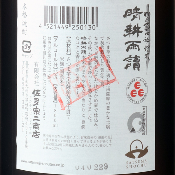 晴耕雨讀 白麹 かめ壺仕込・貯蔵 芋焼酎 25度 / 佐多宗二商店