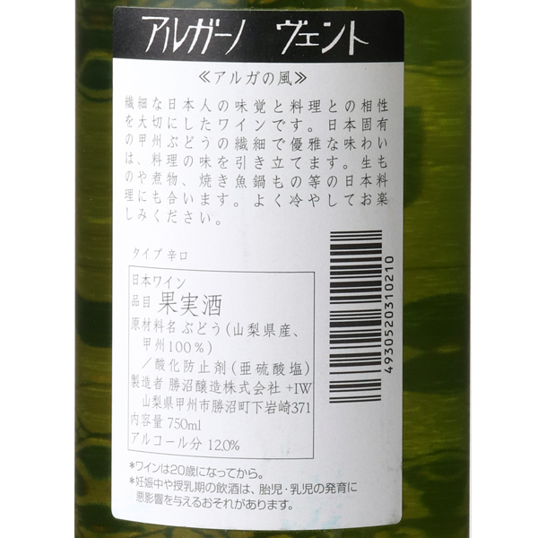 繊細な日本人の味覚と料理との相性を大切にしたワインです。日本固有の甲州ぶどうの繊細な味わいは、料理の味を引き立てます。【オススメ料理】根菜の煮物、根芋の煮物、ニジマスの塩焼き、おでん、生ものや煮物、焼き魚、鍋もの等の日本料理