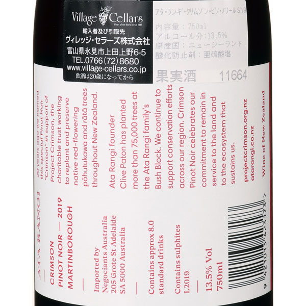 フレッシュな果実味が楽しめるセカンドラベル。プラム、クランベリーに甘草、スパイスの風味が縁取り、ジューシーな口当り。ニュージーランドの天然植物ポフツカワとラタの保護を目的に、このワインの販売による収益の一部がプロジェクト・クリムゾンに寄付されます。蔵紹介