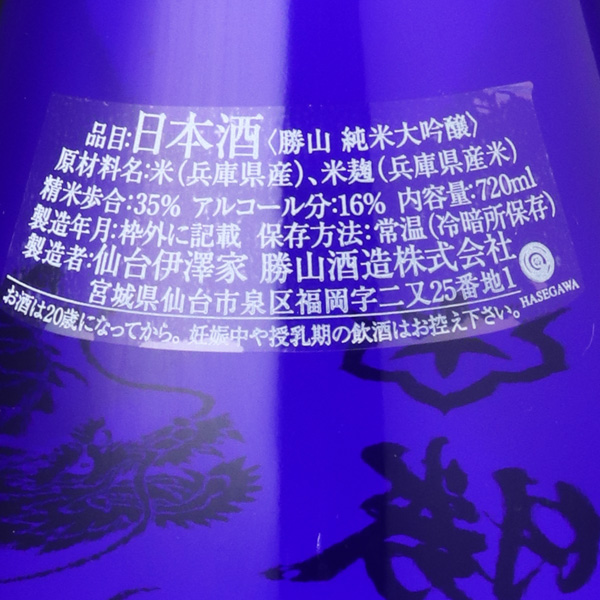 仙台で現存する唯一の伊達家御用蔵元禄元年、1688年に伊達政宗公を藩祖とする伊達家六十二万石の城下町仙台にて創業。その後、320年以上の間酒造りを続けている由緒ある酒蔵です。蔵のある地域は、お米を中心とした穀倉地帯で、泉ケ岳から湧き出る水は、勝山の仕込み水として深井戸より汲み上げ使用しています。水質は酒造りに適した軟水で、美人成分の天然シリカを多く含む、柔らかくキレイな水質となっています。勝山酒造のお酒は純米酒のみに特化しており、1週間にタンク1本の贅沢な仕込を行っています。様々な料理との相性が良く、多様な飲み方を楽しんで頂けます。