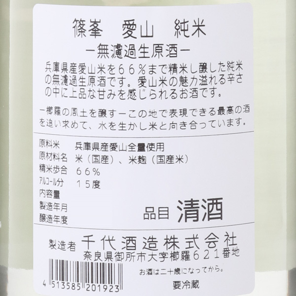 兵庫県産愛山を使用。華やかな香りの吟醸タイプではなく、9号酵母で醸すことで酸と甘みのバランスがとれた食事にも合わせやすい食中酒タイプのお酒です。愛山米ならではの米の上品な甘さをシャープな酸味と共に表現しております。蔵紹介