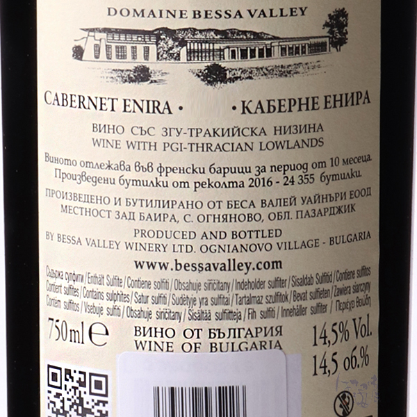 ベッサ・ヴァレーはブルガリアの首都ソフィアから南東に約135km離れたパザルジク州で、265haの畑が購入され2001年に設立されました。ブルガリアの魅力は、古くからボルドー系品種の栽培に成功していた環境に加えて人件費等のコスト面です。2009年12月にナイペルグ伯爵が弊社に来社した際にも『ブルガリアで掛る人件費はボルドーの1/10なので、その分、醸造設備等にも力を入れられる』という事を強調しておりました。ベッサ・ヴァレーでは最も高密度でピュアな葡萄の味わいが得られるフリーランジュースを約95%も使用し、カジュアル・ラインであるプティ・エニーラを含む全てのキュヴェが造られております。フリーランジュースとは破砕後プレスを行わず葡萄の自重のみで自然に流れ出す搾汁の事で、僅かしか得られない為、非常に貴重な果汁です。フリーランジュースはエグ味等のネガティブな味わいが少ない、ピュアで旨味の強い果汁を得られます。
