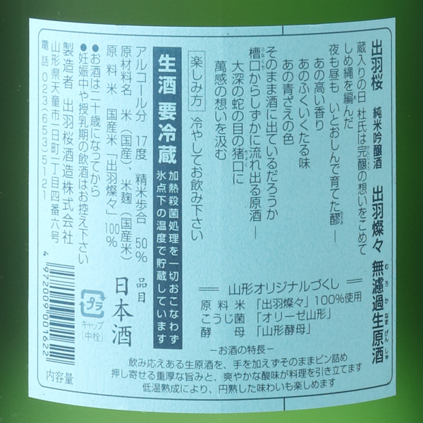 出羽桜 純米吟醸 出羽燦々 無濾過生原酒