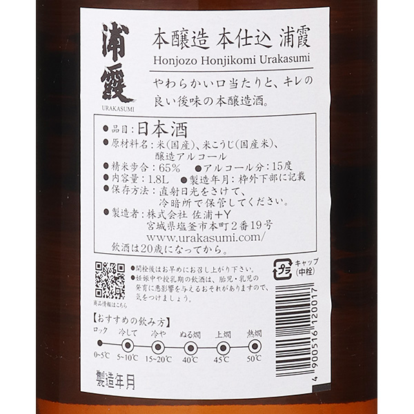 宮城を代表する銘醸蔵 塩釜の豊かな食文化に寄り添う酒享保9年(1724年)創業。美しい風情が多くの歌に詠まれ、歴史的にも食文化的にも恵まれた長い歴史の息づく港町塩竃に蔵はあります。全国新酒鑑評会では全国屈指の金賞受賞歴を誇ります。伝統を大切にし、上品な"品格のある酒"を目指しています。日本酒が持つほど良い米の旨み、味と香りの調和のとれた、まろやかで上品な飲み飽きのしない味わいが浦霞の特長です。食中で活きる味わいで、特に塩釜の特産であるマグロや牡蠣には好相性です。