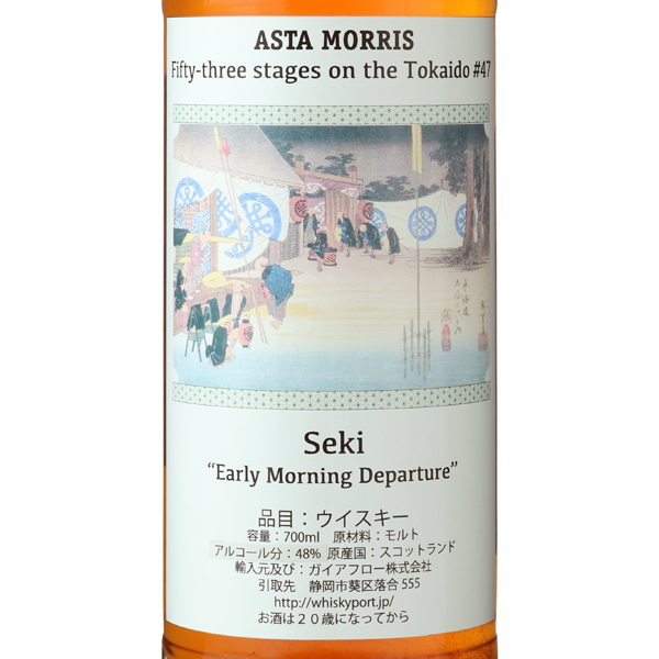 アスタモリスから、初の日本向けボトルが誕生。富士山の世界遺産登録を記念してリリース。歌川広重が描いた東海道五十三次をモチーフにしたラベルデザインです。赤みの濃いフルーツ、甘いシェリーのような香り。なめらかなナッティーさ。熟しきったバナナのような香りをかすかに感じ、空気によく触れさせると、よりいっそう華やかに香る。スパイシーでクリーミー、はっきりとしたナッティーさ、赤い果実のような味わいが漂い、なめらかで甘いペドロヒメネスの味わいと絡み合う。非常に複雑さのある味わい。生産地域:スコットランド