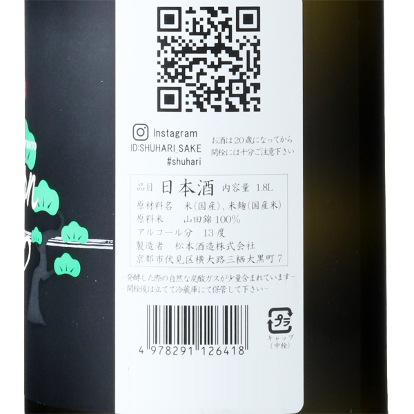 澤屋まつもとが贈る、アルコール度数13%のフードフレンドリーな日本酒です。柔らかい京都の水と兵庫県東条地域の山田錦で醸した純米大吟醸酒クラスのお酒です。良質なお米の旨みを心地よく楽しんでいただけます。松に古今の色なし。ラベルの松の葉はどれも同じ緑色に見えますが、実はその中には古い葉と新しい葉があり、それらが合わさって松が成り立っています。これは一言で日本酒といっても、いろいろなタイプ、味わいがあるということを表現しています。よく見てみると松の葉の一部が、黄色になっているのがわかります。その中でも個性と信念を持った、新しい日本酒を造りたいという、蔵元の強い思いを感じられます。