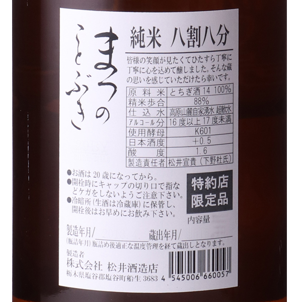 松の寿 純米 とちぎ酒14 八割八分 ひやおろし
