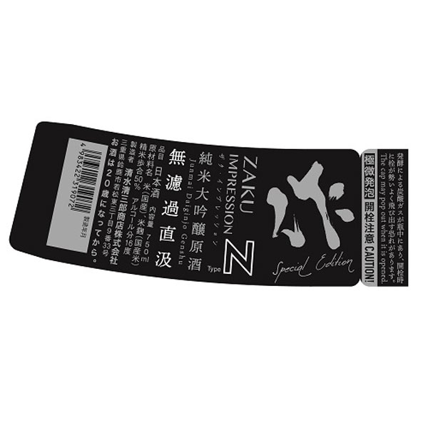 火入れのお酒のみ造る「作」ですが、まるで生酒かと思うようなピチピチとしたガス感とフレッシュな口当たりを実現したのがImpressionシリーズです。Impressionは印象、感銘という意味を持ち、まさに一口飲んだら感銘を受ける味わいで大人気!Nは中取り 雅乃智 純米大吟醸の直汲みバージョン。高く広がる華やかな香りにみずみずしい艶のある甘味。透明感のあるクリアな酒質と心躍る様ないきいきとした微発泡が味にメリハリを与えています。抑揚のある味わいを楽しみながら、ほのかなガス感により後味はとても爽やかです。