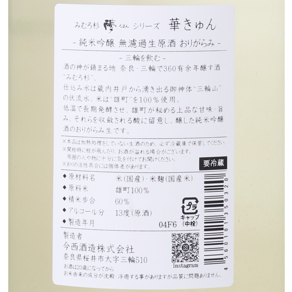 みむろ杉 華きゅん 純米吟醸 雄町 オリガラミ生