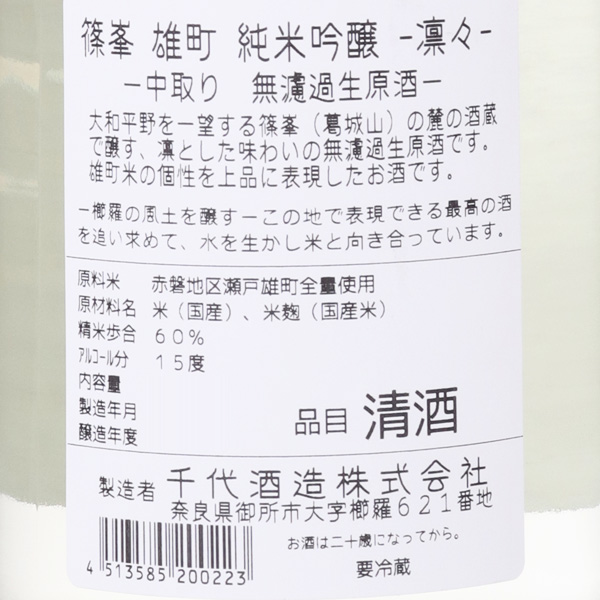 篠峯 凛々 純米吟醸 無濾過生原酒