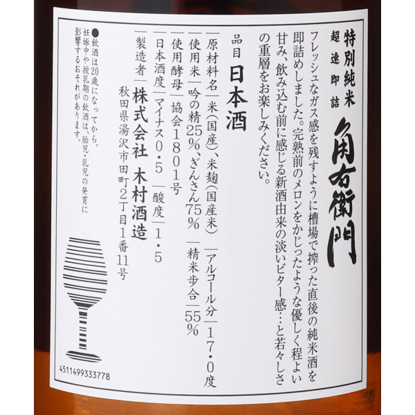 フレッシュなガス感を残すように槽場で搾った直後の純米酒を即詰めしています。軽快な口当たり、優しい甘味、飲み込む前に感じる新酒由来の程良いほろ苦さ。豊かな香りと爽快感をお楽しみください。蔵紹介
