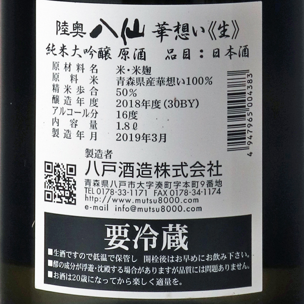 陸奥八仙 純米大吟醸 華想い50 無濾過生原酒