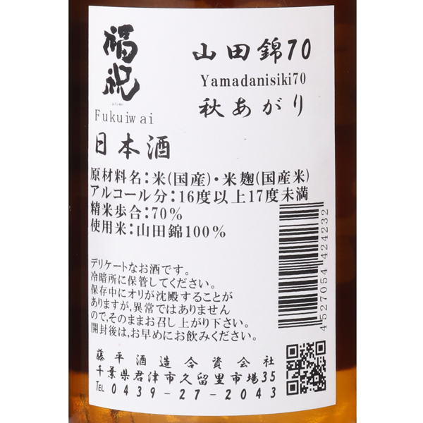 洗いに始まり、洗いに終わるをモットーにかかげる、兄弟で醸すお酒!享保元年(1716年)の創業。房総半島の中央に位置する、平成の名水100選に選出された、庭を掘れば水が湧く、と言われる名水の里 久留里の城下町に藤平酒造はあります。町には井戸が溢れ、近所の方や都内からもその水を求めて行列を作るほど。福祝は蔵元である男3兄弟で毎年300石前後が醸されます。一に原料処理、二に原料処理、三に原料処理。良い麹も醪もすべては原料処理からと、造りのスタートラインである原料処理にこだわりを持つ。空調管理された仕込み蔵で1本ずつ丁寧に育てられた醪は、すべて1台のヤブタによってゆっくりと搾られます。