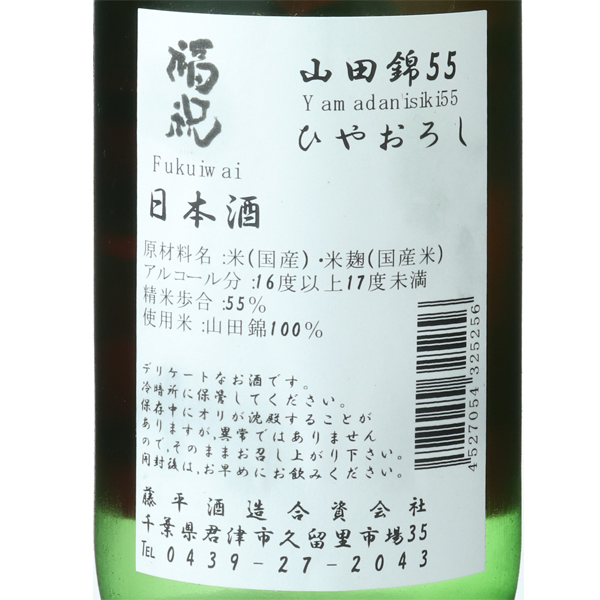 福祝 特別純米 山田錦55 ひやおろし 無濾過生詰原酒