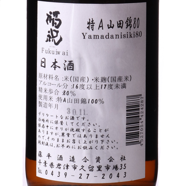 洗いに始まり、洗いに終わるをモットーにかかげる、兄弟で醸すお酒!享保元年(1716年)の創業。房総半島の中央に位置する、平成の名水100選に選出された、庭を掘れば水が湧く、と言われる名水の里 久留里の城下町に藤平酒造はあります。町には井戸が溢れ、近所の方や都内からもその水を求めて行列を作るほど。福祝は蔵元である男3兄弟で毎年300石前後が醸されます。一に原料処理、二に原料処理、三に原料処理。良い麹も醪もすべては原料処理からと、造りのスタートラインである原料処理にこだわりを持つ。空調管理された仕込み蔵で1本ずつ丁寧に育てられた醪は、すべて1台のヤブタによってゆっくりと搾られます。