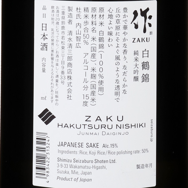 作 純米大吟醸 白鶴錦