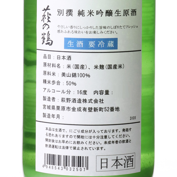 萩の鶴 別撰 純米吟醸 生原酒