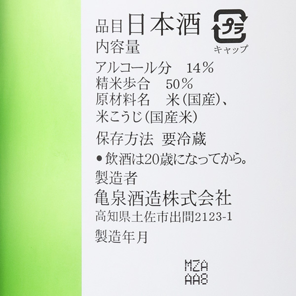 笑顔と香りが溢れる酒亀泉酒造は明治30年、1897年創業。自然豊かな波介山の麓にある蔵内には、寛永十二年頃から枯れたことがない泉が渾々と湧き出ています。水質は、清流仁淀川水系の軟水。ほのかな甘味があり、優しいのどごしと味わいが特徴的で、この泉が枯れること無く湧き続けていることによって、当時の思いと酒造りが受け継がれてきました。これから先もこの泉を守ると共に、神々に、そして日本酒の原料となる水や米を育む自然に感謝し、古くから受け継がれてきた文化に携わることに誇りを持って、一つ一つ丁寧に心を込めて強い思いで酒造りを続けています。