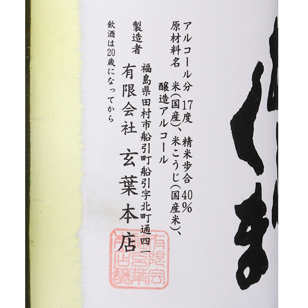 お米の味を感じながら食中で楽しめる文政6年、1823年創業。年間200~300石前後の小規模な蔵です。製品出荷先の大部分が地元田村市となっております。平成17年秋より杜氏制度を廃止し、経営者が自ら製造責任者となり地元の人間だけで仕込む体制をとりました。小規模さを生かし、手間を惜しまずに丁寧に仕込むことで、毎年酒質のレベルを上げていくことが目標です。