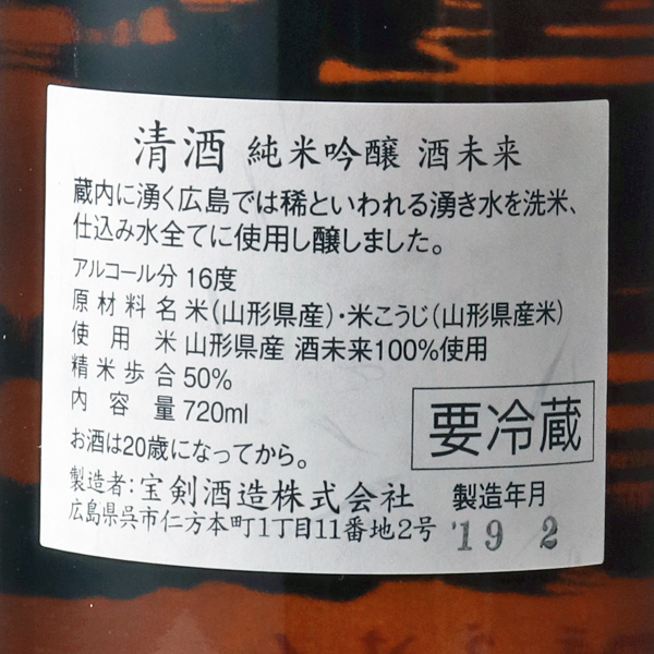 酒未来は十四代醸造元の高木酒造が開発した酒造好適米。日本酒の未来を担う全国の志ある蔵へ託され、数々の名酒を産み出しています。しぼりたての爽やかな香りと、鮮やかで瑞々しい口当たり。お米の持つ甘味と宝剣ならではのキレの良さが合わさり、好印象なバランスを醸し出します。蔵紹介