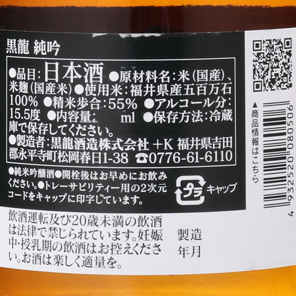 厳選した福井県産五百万石を贅沢に仕込み米本来の旨みを引き出しました。太くどっしりとした重心の低い香りがストレートに感じられ、とろみすら感じる粘性を帯びたボディーは躍動感と瑞々しさを伴っており、豊かでバランスが良い印象です。強さとほのかな苦味の引き締まりが後半に旨味を残します。蔵紹介