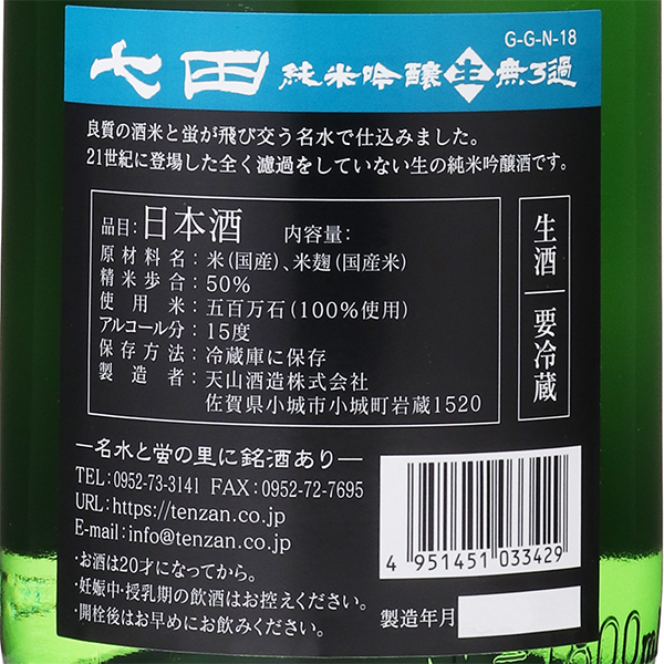 兵庫県産の五百万石を50%まで磨きあげた、七田シリーズ最初の新酒ならではのジューシーでぴちぴちとした程よいガス感と、七田ならではの濃厚な味わいとキレが両立しているお酒です。冬の食材を使った石狩鍋やロールキャベツなどとの相性ばっちりです。七田の新酒シリーズのトップバッター。しぼりたての味わいをぜひご堪能ください。蔵紹介