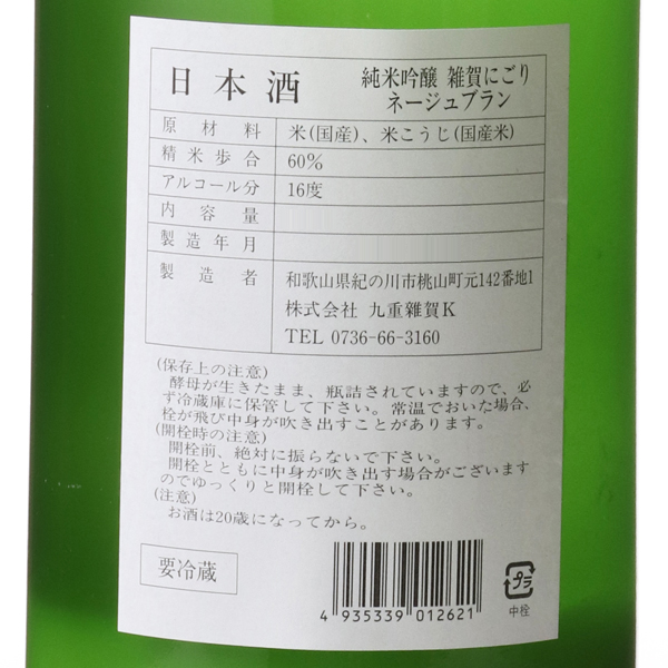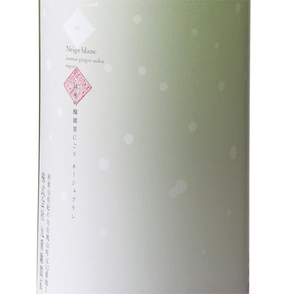 季節限定の純米吟醸にごり。商品名ネージュブランはフランス語で純白を意味し、にごりの白さを表しています。お食事に合わせやすいよう、微発泡性辛口のドライタイプに仕上げました。しっかりとしたキレと旨みを感じます。注意事項
