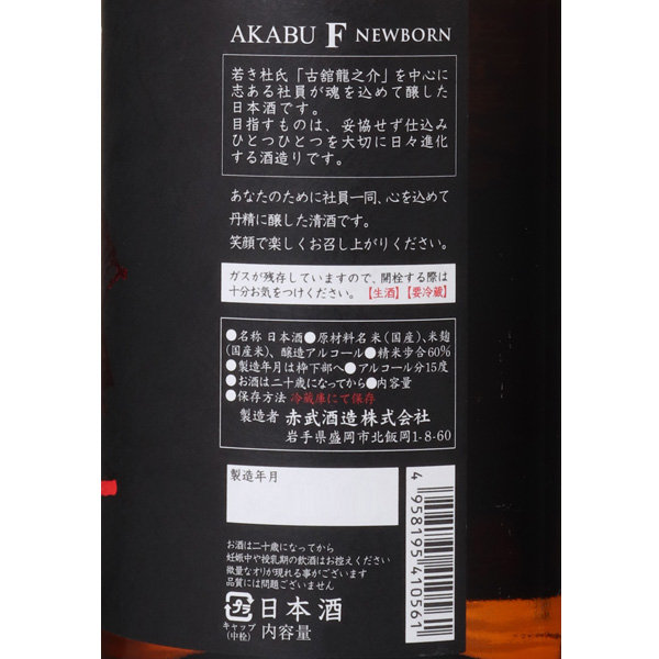 7BYのテーマは、「さらにシャープなキレ」AKABUのしぼりたて新酒が登場!赤武酒造がお客様のために「日々美味しく召し上がれる清酒を醸そうと」想いをこめて醸した吟醸酒です。「あなたのために・・・=For you」 を略して「F」。