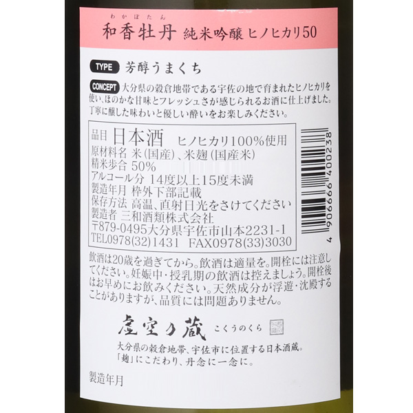和香牡丹 純米吟醸 ヒノヒカリ50
