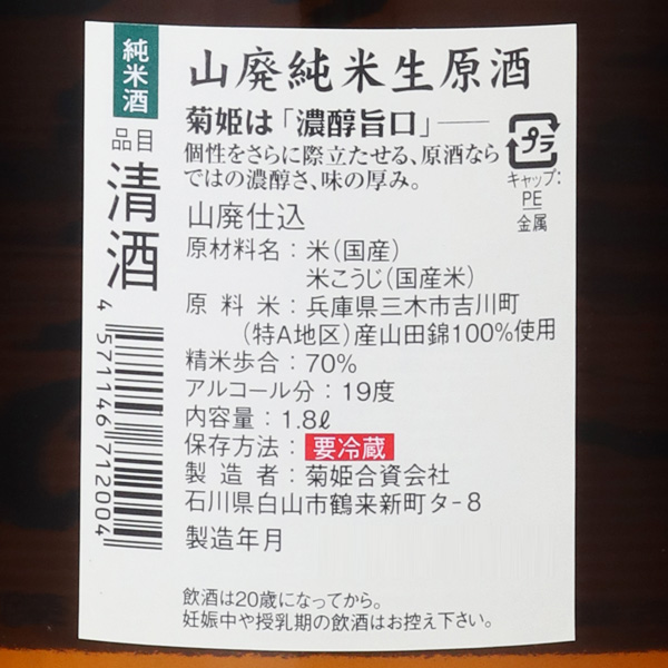 菊姫 山廃純米 生原酒無濾過