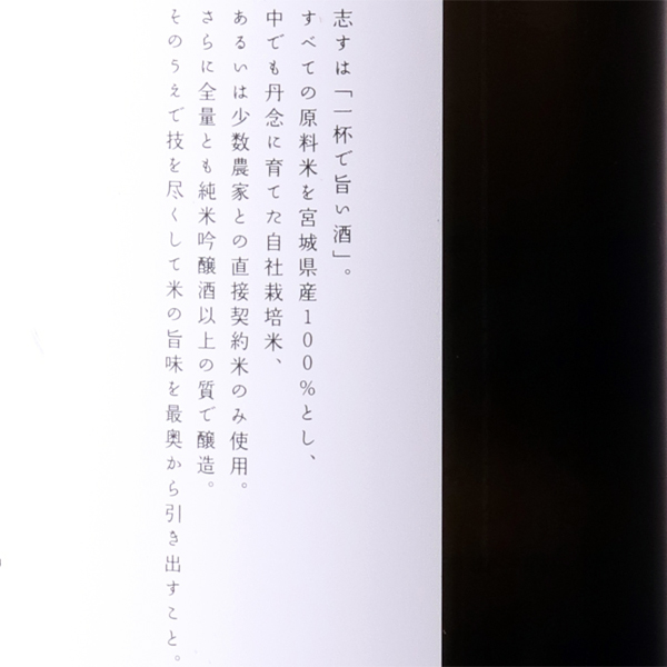 たった一杯でたっぷり贅沢したような明るい気持ちになれる酒。大正7年、1918年創業。ササニシキやひとめぼれなどのブランド米の産地として有名な、宮城県大崎市の古川柏崎字境田に蔵はあります。創業者の岩崎碩次郎は遊び心を大切にしてお酒を造っていたそうです。それに習い、現在も遊び心を忘れず、ほがらかな明るい気持ちがお酒に伝わるよう、日々醸造しています。お米は自社栽培したものを使用し、田んぼから酒造りを始めます。自社栽培米以外も使用しますが、全て宮城県内のものにこだわり、地元を大切にしています。心やすらぐ春のような、優しい味わいのお酒をご堪能ください。