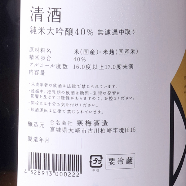 宮寒梅 純米大吟醸 40% 無濾過中取り