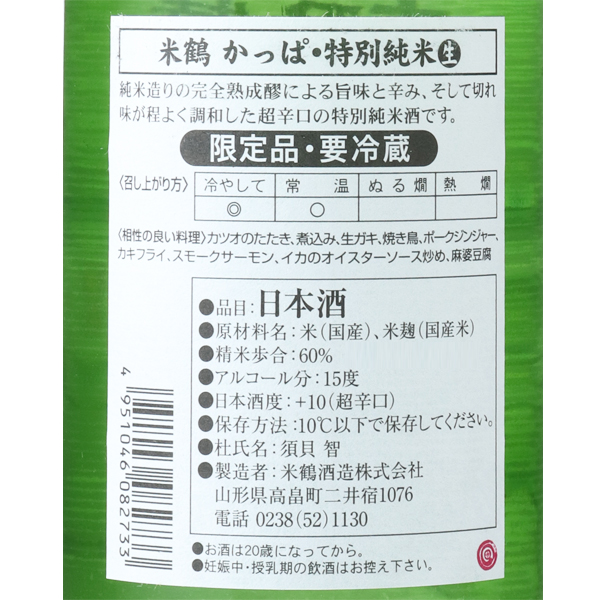 米鶴 かっぱ 特別純米 超辛口 うすにごり生