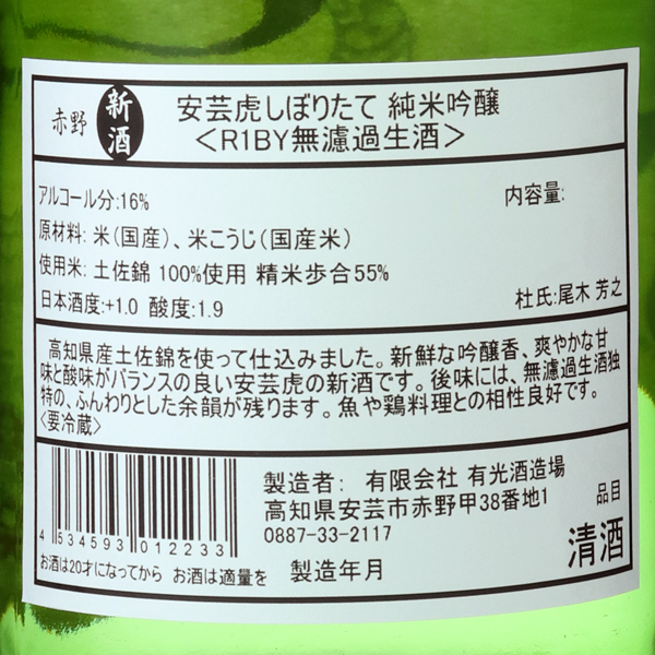 安芸虎 しぼりたて 純米吟醸 生