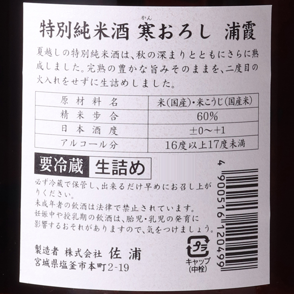 浦霞 特別純米 寒おろし
