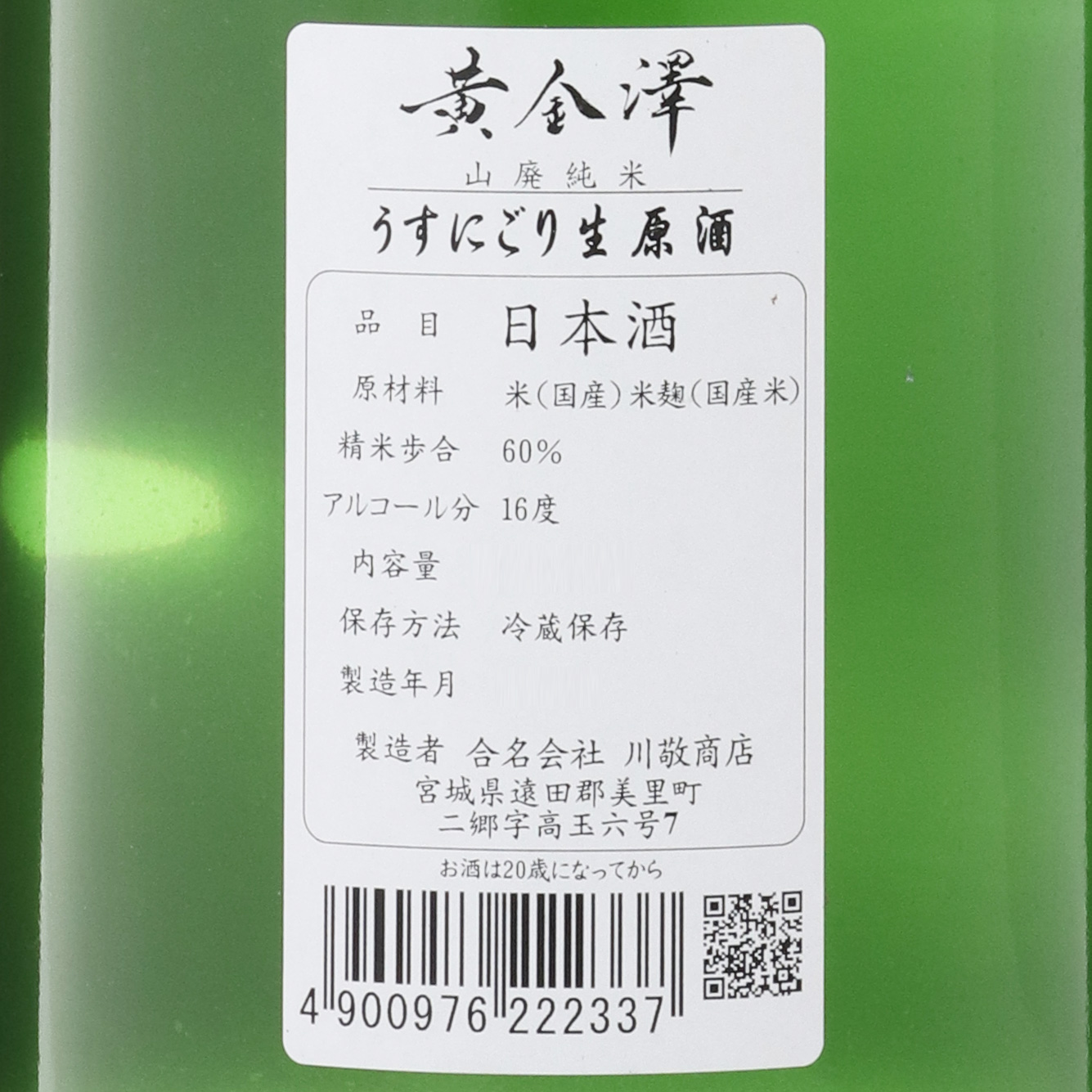 新酒鑑評会金賞常連の蔵を継いだ若き女性杜氏明治35年、1902年創業。全国新酒鑑評会にて県内でも群を抜く金賞受賞率を持つ酒蔵。一人娘として産まれた、川名由倫氏は2012年より父の指導を受けながら本格的に酒造りを開始。現在では蔵を継ぎ、「黄金澤」の代名詞ともいえる伝統の山廃仕込みを主体とした酒造りを行っています。女性ならではの感性で仕込まれたそのお酒は山廃仕込の武骨なイメージを覆す酒質で、口当たり軽やかで芯が通った味わいに仕上がっています。日々の経験を糧に発展を続ける酒蔵のお酒を是非お試しください。