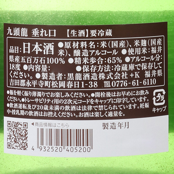 手塩にかけて育てたお酒に貼るラベルにもこだわりが見られ、越前和紙や越前織やベルベットの繊維を用いるなど、製紙業、繊維産業と深い結び付きのある福井県ならではの要素を取り入れています。1本の酒を通じ、福井という存在や日本の様々な伝統技術を国内外に発信し続けています。「良い酒を造れば、人は必ず支持してくれる」を座右の銘とし、醸造だけで無く、あらゆる工程を気にかけ、飲まれるその瞬間まで妥協しない酒造りを行っています。