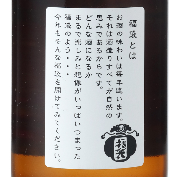 米の出来や天候といった自然条件に合わせて、どの年も一からの心がまえで臨むのが酒造りの仕事。ベテランの杜氏でさえ「毎年一年生」と言う所以です。新酒があがるまで、造り手は緊張感でドキドキし、飲み手は「今年はどんな酒が」の期待感でドキドキするものです。そのドキドキ感を、開けてみてのお楽しみ、の思いをこめて「福袋」と名づけられています。福袋はその年最初の純米吟醸を化粧なしでそのまま詰めた、切れ味のいい辛口生原酒。新酒があがる時期の年末年始にふさわしい縁起の良いネーミングは、めでたい席に華を添えてくれます。