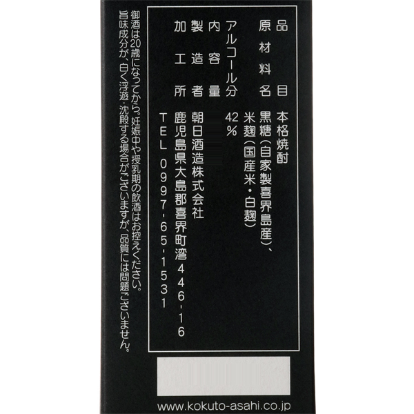 陽出る國の銘酒 2011 黒糖焼酎 42度 / 朝日酒造