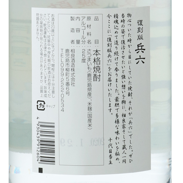 復刻版 兵六 芋焼酎 25度 / 相良酒造