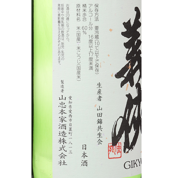 義侠 山田錦共生会特別栽培米純米原酒 60%
