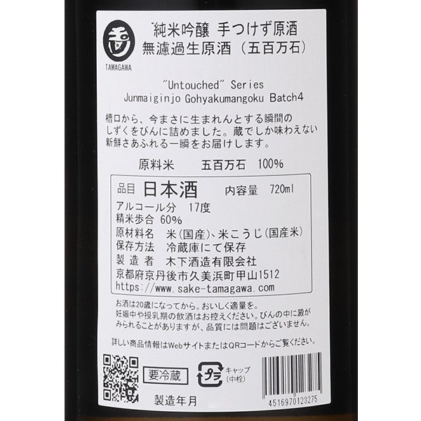 玉川 手つけず原酒 純米吟醸 日本晴 生